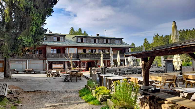 Auf dem gesamten Rundweg gibt es nur eine Einkehrmöglichkeit, nehmt deshalb ausreichende Mengen an Getränken und einen Snack für zwischendurch mit. Ein guter Platz für ein kleines Picknick ist der Gipfel der Platte, hier stehen auch Bänke.