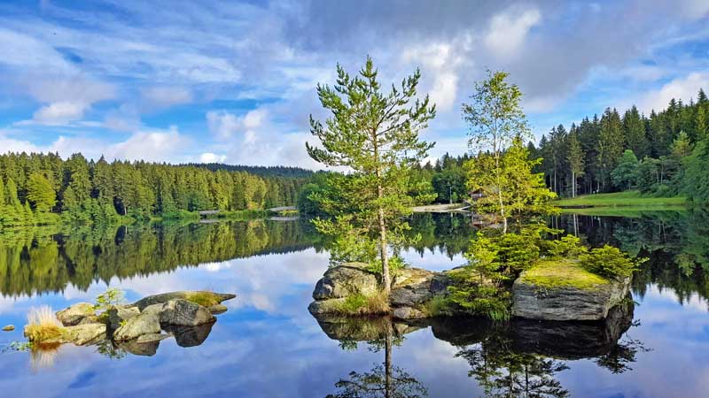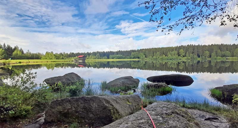 An der Landkreisgrenze zwischen Bayreuth und Wunsiedel liegt eine der atemberaubenden Naturschönheiten im Fichtelgebirge, der Fichtelsee. Eingerahmt von den Bergmassiven des zentralen Fichtelgebirges ist nicht nur das Panorama wunderschön, sondern viele weitere Sehenswürdigkeiten in unmittelbarer Nähe. Dazu gehört auch das Blockmeer am östlichen Hang der 885 Meter hohen Platte, zu der der Rundweg führt.