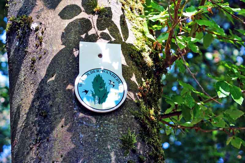 - Markierung: Rundes Schild mit einem grünen Wacholderbusch (Wacholderwanderweg)