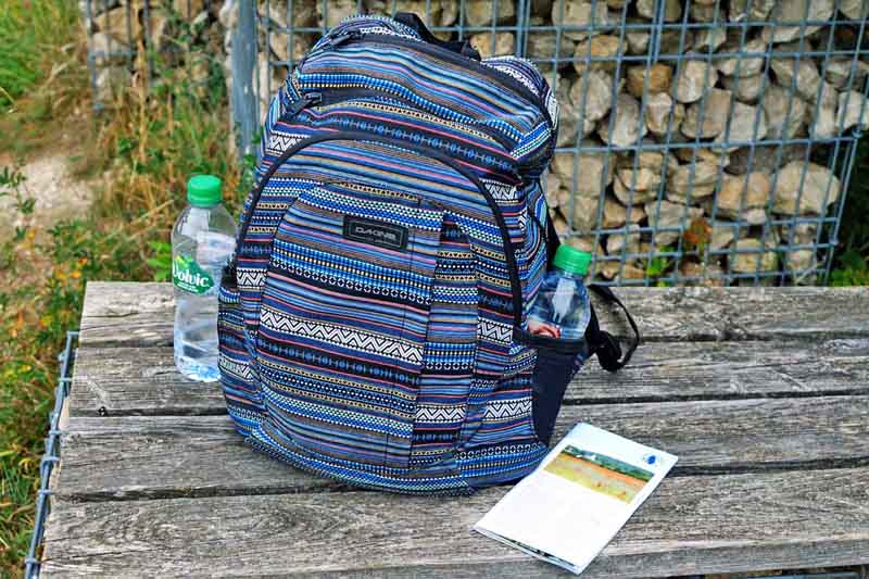 Meine *Trekking-Hose ist ziemlich unempfindlich, und beschließe, dass sie auch mal zwei Tage durchhalten muss, um Gepäck zu sparen. Trotz minimalistischer Ausstattung ist der Rucksack durch die zwei Wasserflaschen ganz schön schwer. Auf Getränke solltest du aber auf keinen Fall verzichten. Vor allem dann nicht, wenn du wie ich im Hochsommer 2018 bei über 35 Grad unterwegs bist.