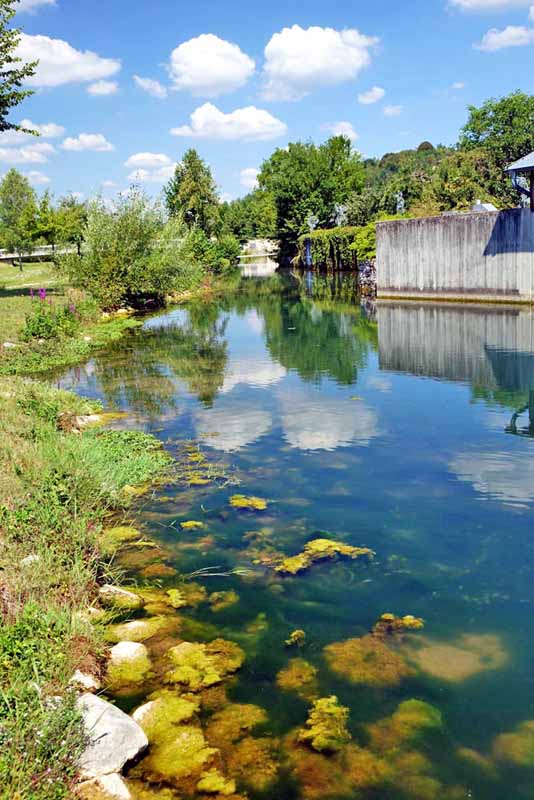 Mein Blick schweift von der Bäckerei Grosser zur Rechten hinüber zu den rosaroten Gebäuden der Metzgerei Spies und des Gasthofes Goldener Ochse bis zum sonnengelben Haus mit dem Marktcafé. Ich sitze auf einer bequemen Bank vor der Pfarrkirche Ägidius auf dem weitläufigen Marktplatz in Schmidmühlen, der auf einer Halbinsel liegt, eingebettet von den beiden Flussläufen der Markt: Vils und Lauterach. Ich trinke noch einen letzten Latte Macchiato, bevor ich mich endgültig auf den Weg mache.