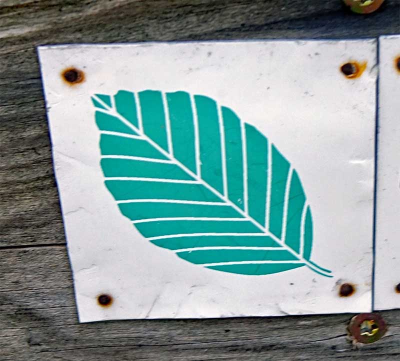 - Markierung: Grünes Buchenblatt auf weißem Grund