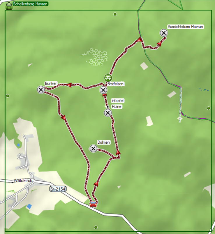 - Start/Ziel: Wanderparkplatz Planer Höhe an der St2154 zw. Waldkirch und Georgenberg