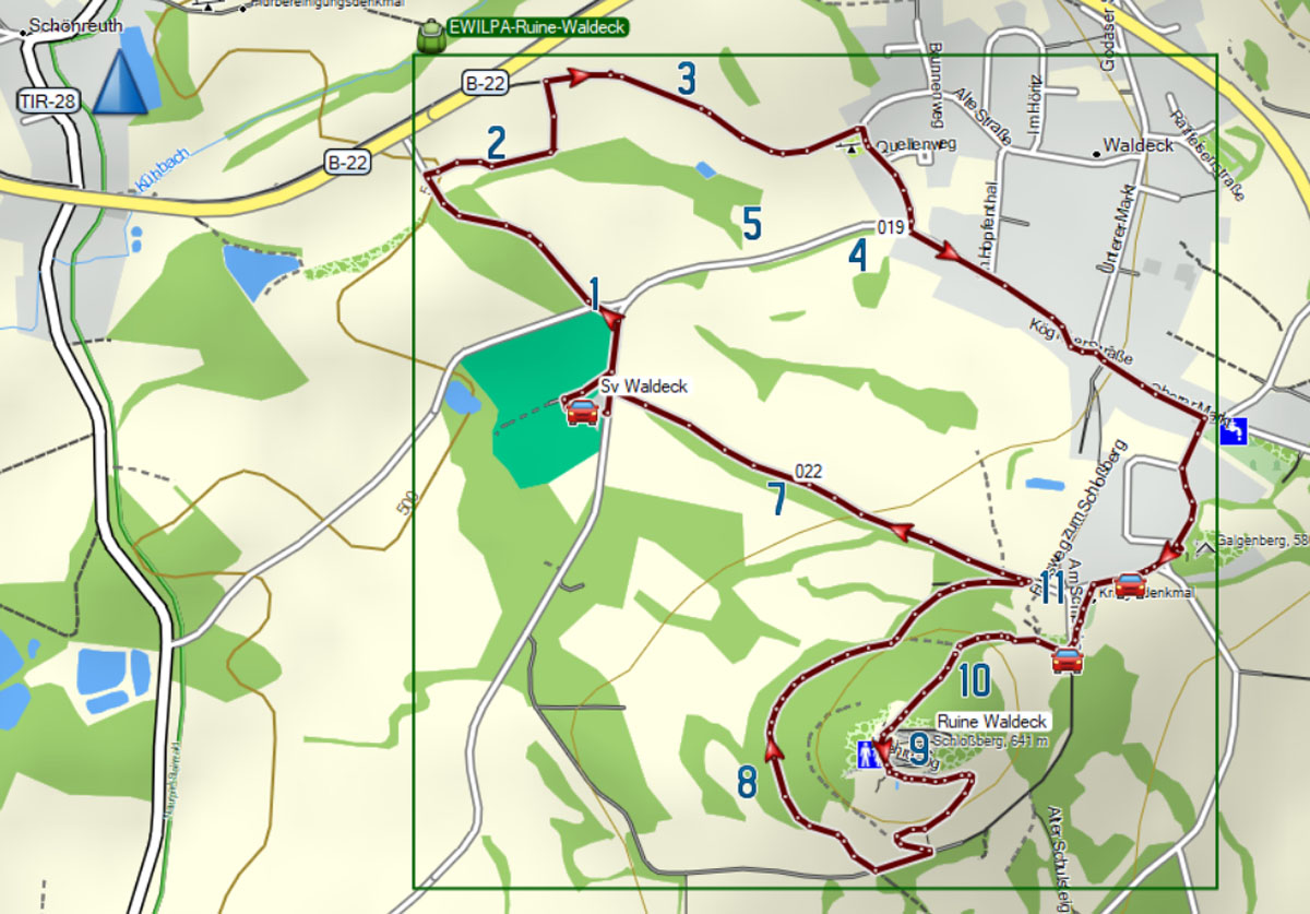 - Alternative: Parkplatz an der Burgruine Waldeck (Am Schlossberg)