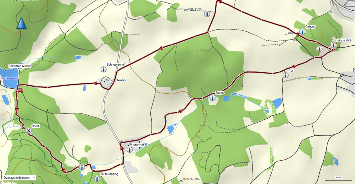 - Start/Ziel: Wanderparkplatz am Gollwitzerhof (Weiher)