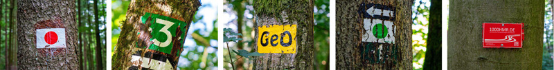- Markierung: Rotpunkt, 3 auf grünem Grund, GeO-Pfad, Grünpunkt, 1000 Höhenmeter