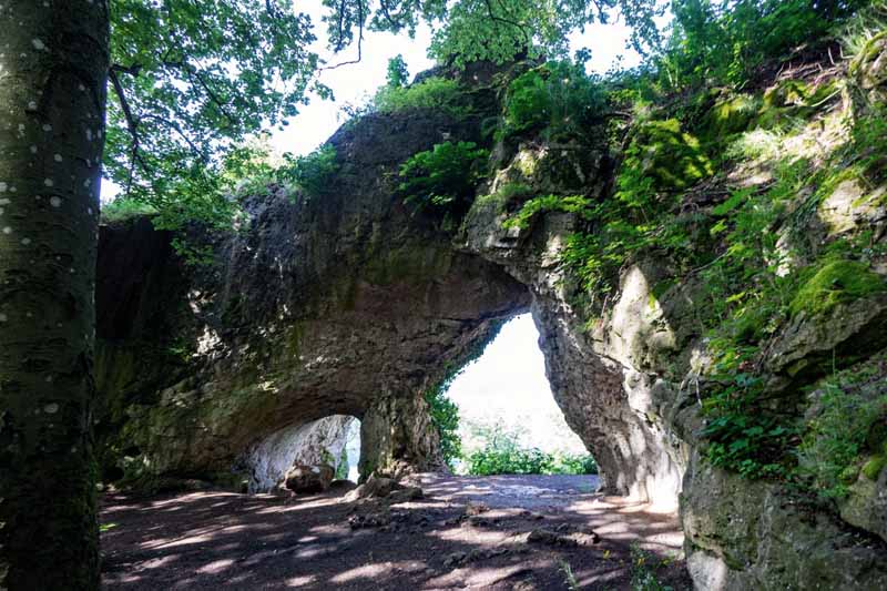 Besonders spektakulär ist die vor dem Hohlen Fels liegende Naturbrücke, ein schmales, torförmig geformtes Segment mit zwei Öffnungen, die durch eine Säule aus Gestein getrennt sind. Wen wundert es da, dass der Hohle Fels zu den schönsten Geotopen in Bayern zählt.