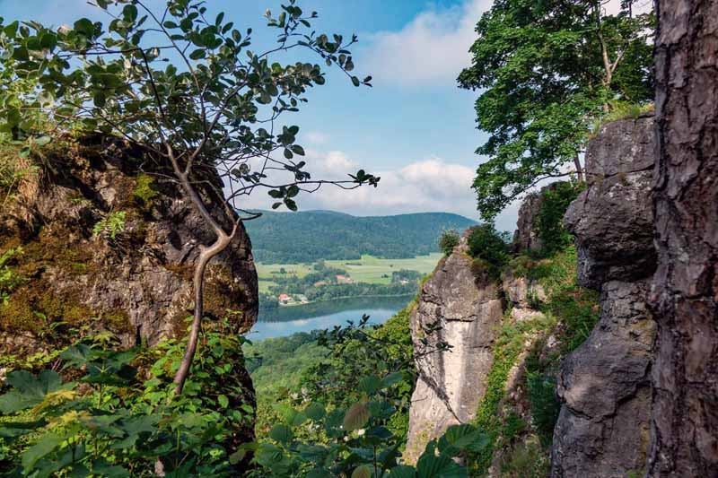 Etwa 30 Kilometer östlich von Nürnberg ragt ein markanter Berg über die sanften Hügel der Mittleren Frankenalb hinaus. Zu Füßen der Houbirg leuchtet das Blau des Happurger Stausees und verspricht ein echtes Urlaubsgefühl. Oben lockt der Hohle Fels und das Steinerne Gässl. Orte voller Zauber und Magie. Kein Wunder, dass die Gegend in der Hersbrucker Schweiz zu den beliebtesten Ausflugszielen in Mittelfranken gehört.