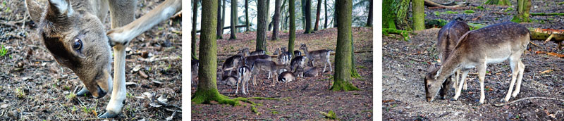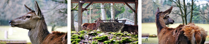 Drei Rundwanderwege führen den Besucher bergauf und bergab durch die verschiedenen landschaftlichen Besonderheiten der Fränkischen Schweiz, rechts und links von den Gehegen flankiert. Die Besonderheit: Damwild, Rotwild und der eine oder andere Hornträger, die vorwiegend in den steinigen Bergregionen heimisch sind, leben hier im Wildpark nicht hinter Zäunen. Ihr könnt direkt auf dem Rundweg durch das riesige Gehege laufen. Kontakt nicht ausgeschlossen.